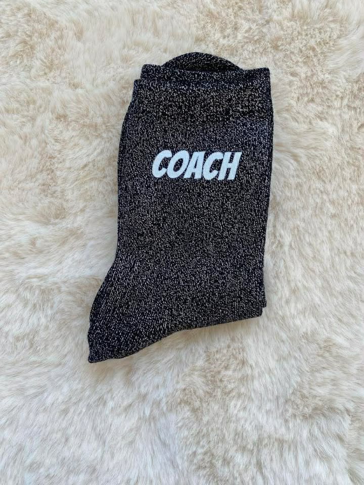Chaussettes pailletées « COACH», cadeau parfait pour remercier votre entraineur. Une idée de cadeau simple, fun et qui fait plaisir. Disponibles en noir.